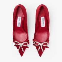 Auria 70 Ruby Red Satin Pumps with Satin and Crystal Bow