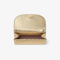 Avenue Curve Wallet Chain Shiny Gold Quilted Metallic Leather Clutch