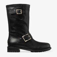 Details, Care & Fit An archival style originally presented in Autumn/Winter 2008, the iconic Biker Mid boots are modern wardrobe essentials. This season they are presented in textured biker leather for an effortless aesthetic and offset by polished hardware buckles engraved with the Jimmy Choo logo. Finished with a durable tread sole and low stacked heel, these signature boots are as relevant now as ever. - Biker leather - Engraved buckles - Tread sole - Low stacked heel - Made in Italy