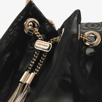 Details, Care & Fit Inspired by contrasts - hard yet soft, sweet yet bold - the aptly named Bon Bon in mesh is an irresistible, statement handbag. It earns its iconic status with a contemporary bucket silhouette that is crowned with a bracelet handle. This versatile design is complemented by a chain shoulder strap, meaning it can be worn as a crossbody or held in hand. - Mesh - Metal bracelet handle - Metal tassel closure with Jimmy Choo engraving - Chain shoulder strap - Bag measures: L 14 x H 15 x W 9.5 cm - Strap drop measures: 55 cm - Handle drop measures: 9 cm - Made in Italy