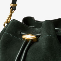 Details, Care & Fit Inspired by contrasts – the Cinch bag is an evolutionary piece in our Bon Bon family, defined by a soft and effortless silhouette that is cinched by a faceted Diamond drawstring closure. This definitive style is crafted from suede and is complemented by gold-tone hardware. Wallet, A6 notepad, lip gloss, keys with tassel keyring, sunglasses with case, 100ml perfume. - Suede - Drawstring closure - Detachable shoulder straps - Bag measures: L 35 x W 13 x H 16 cm - Handle drop: 20cm - Shoulder strap drop: 30cm - Made in Italy