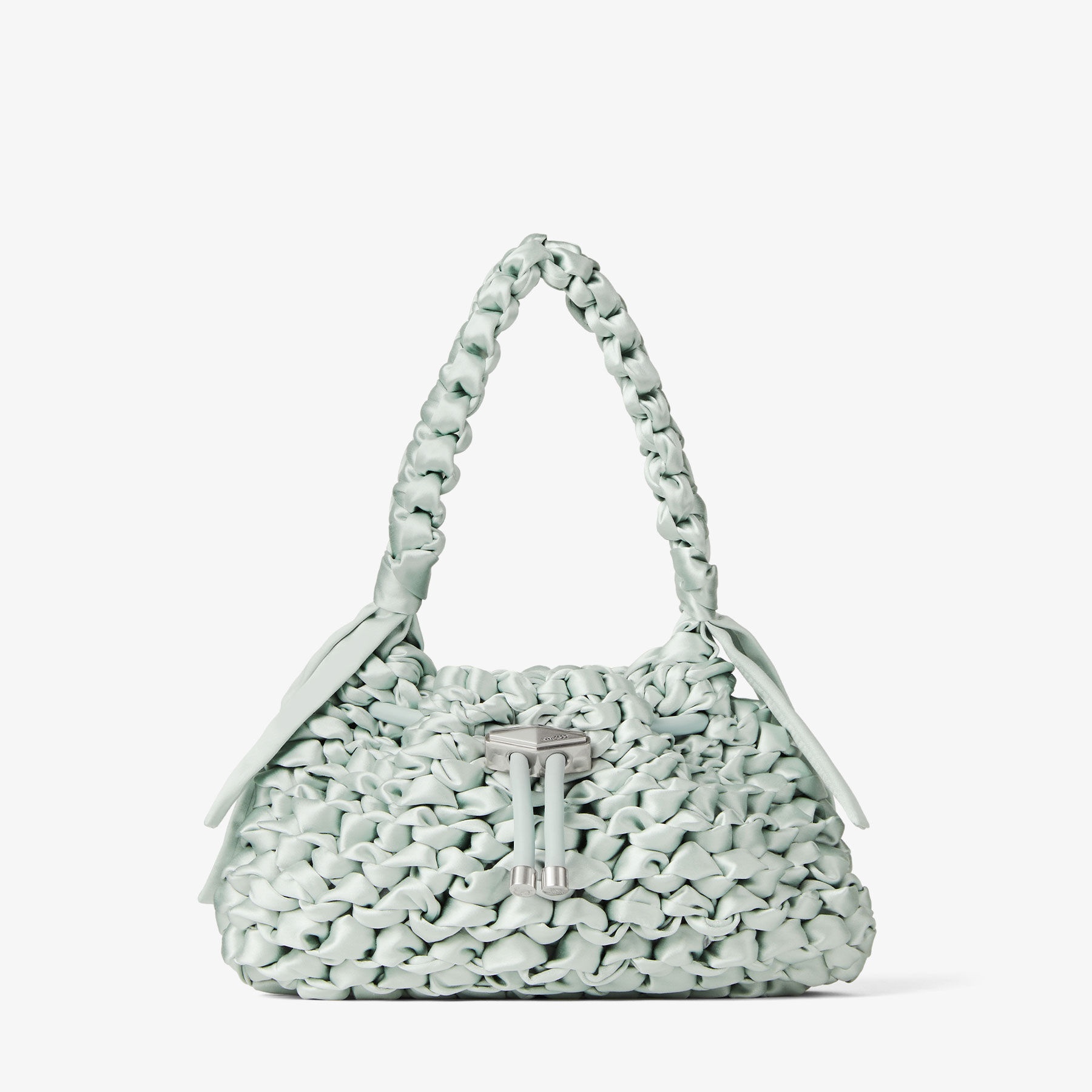 Details, Care & Fit The Cinch bag is defined by an effortless silhouette secured with a drawstring closure and signature diamond clasp. Celebrating Jimmy Choo's inherent artistry, this season it's realised in padded satin, handwoven by master artisans in Italy. - Woven satin - Drawstring closure - Diamond hardware - Woven knot top handle - Detachable shoulder strap - Bag measures: L 22 x H 12 x W 11.1cm - Handle drop: 10cm - Shoulder strap drop: 55cm - Made in Italy