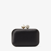 Details, Care & Fit Item No. CLOUDTLL Our Cloud clutch is effortlessly glamorous in sleek satin. Cleverly crafted to fit naturally in your hand, this compact minaudiere is exquisitely structured with a detachable chain strap and features a spacious interior for all of your day or night essentials. A timeless piece, complemented with a ball clasp decorated with pearls and crystals. - Satin - Pearl and crystal clasp - Detachable chain strap - Bag measures: L 15 x H12 x W6 cm - Made in Italy