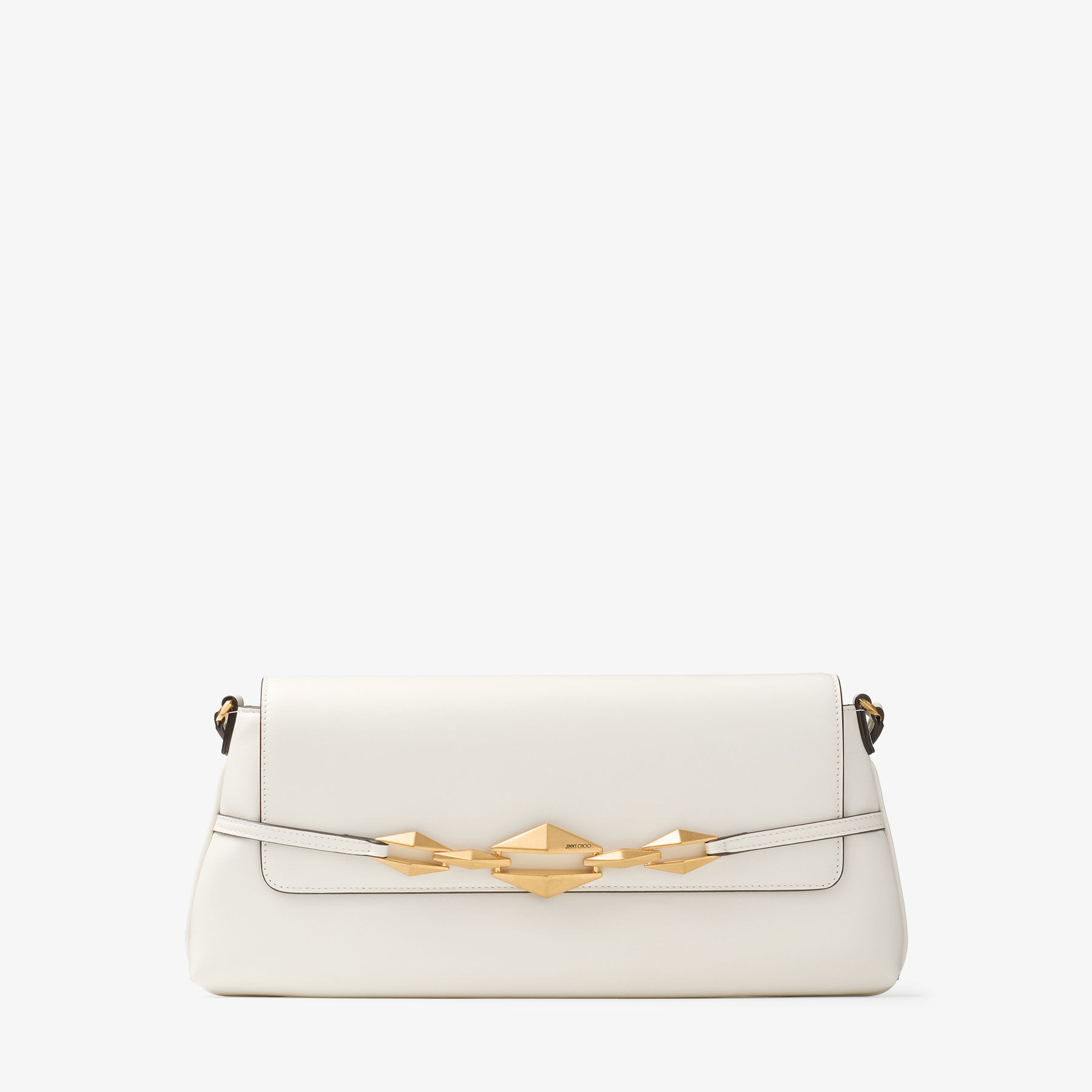 Diamond Shoulder East-West Latte Shiny Calf Leather Shoulder Bag with Diamond Detail