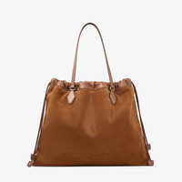 Drawstring Tote L Tan Suede and Smooth Calf Leather Tote with Jimmy Choo Logo