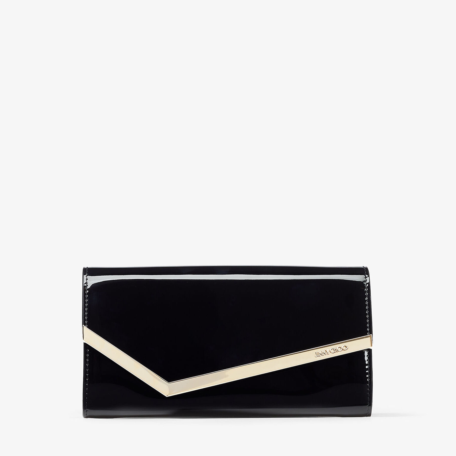 Details, Care & Fit Item No. EMMIEPAT The Emmie clutch bag in black patent leather leather has a clean and modern raw edge construction. Designed in Italy, this ultimate evening clutch boasts a Jimmy Choo engraved magnetic snap button closure on the front panel. The detachable chain adds freedom and versatility, so wear yours full length or carried in hand. - Patent leather - Magnetic snap closure - Detachable chain strap - 6 card holders - Internal zipped pocket - 1 compartment - Measures: L22 x H12 x W3cm - Made in Italy