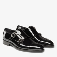 Details, Care & Fit Item No. FINNIONMONKSTRAPPAT Classic yet contemporary, the Finnion double monk strap shoes are crafted in patent leather, embellished with studs evocative of our Diamond family. They feature two buckles, a round toe and a leather sole. Wear with fine tailoring to finish your formal looks to perfection. Italian sizing. Fits true to size. - Patent leather - Studded embellishment - Buckle fastening - Round toe - Leather lining - Leather sole - Made in Italy
