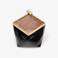 Details, Care & Fit The Ganache clutch is shaped in softy shiny biker leather and offset by a sleek gold-tone frame, punctuated with engraved logo detailing and a statement clasp. A slender chain strap offers styling versatility, while the soft body contrasts with the angular top for a striking effect. - Biker leather - Gold-tone hardware - Engraved logo - Clasp fastening - Chain strap - Bag Measures: L 12.5 x H 14.5 x W 10cm - Made in Italy - By purchasing this product, you join our commitment to support responsible leather manufacturing through the Leather Working Group