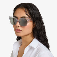 Details, Care & Fit Giava is a contemporary pillow-shaped style accented with tonal glitter effect. It is designed with glitter at the top of the rim and at the temples, complemented by our signature emblem. - Recycled acetate - Bio-nylon grey silver mirror lenses - Square frame - Glitter finish - 100% UVA and UVB protection - Presented with a Jimmy Choo case and cleaning pouch - Lens width: 5.5cm - Bridge length: 1.6cm - Temple length: 14cm - Made in Italy - This product is made with recycled acetate, which is obtained through carbon renewal technology - Bio-nylon lenses are made with a percentage of bio-based carbon from plant-based sources