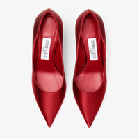 Details, Care & Fit A signature Jimmy Choo silhouette, reimagined in ruby red. The Love pump is shaped with a sharply pointed toe and slender stiletto heel, finished in high-shine satin. The vamp is cut slightly higher on the foot for added coverage and a flattering line. - Satin - Hand-sculpted sole - Pointed toe - Leather lining and sole - Heel height measures: 85mm/3.3 inches - Made in Italy