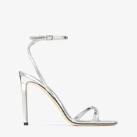 Details, Care & Fit A delicate evening sandal, crafted in liquid metal leather and set on a slender 100mm heel, defined by an elegant criss-crossed upper and ankle strap. - Liquid Metal Leather - Open toe - Crossover straps - Heel height: 100mm / 3.9 inches - Made in Italy