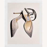 Details, Care & Fit Blurring the line between footwear and jewellery, the iconic Saeda pump with a mesh upper is embellished with crystals and made distinct with its delicate crystal anklet. This shining statement features individually applied crystals which includes a drop crystal that hangs elegantly at the back of the shoe. The anklet is designed and crafted to sit low on the ankle, effortlessly elongating the leg. - Crystal-embellished mesh - Hand-finished crystal anklet - Adjustable clasp closure - Pointed toe - Leather sole - Fabric lining - Heel height measures: 100mm/3.9 inches - Made in Italy