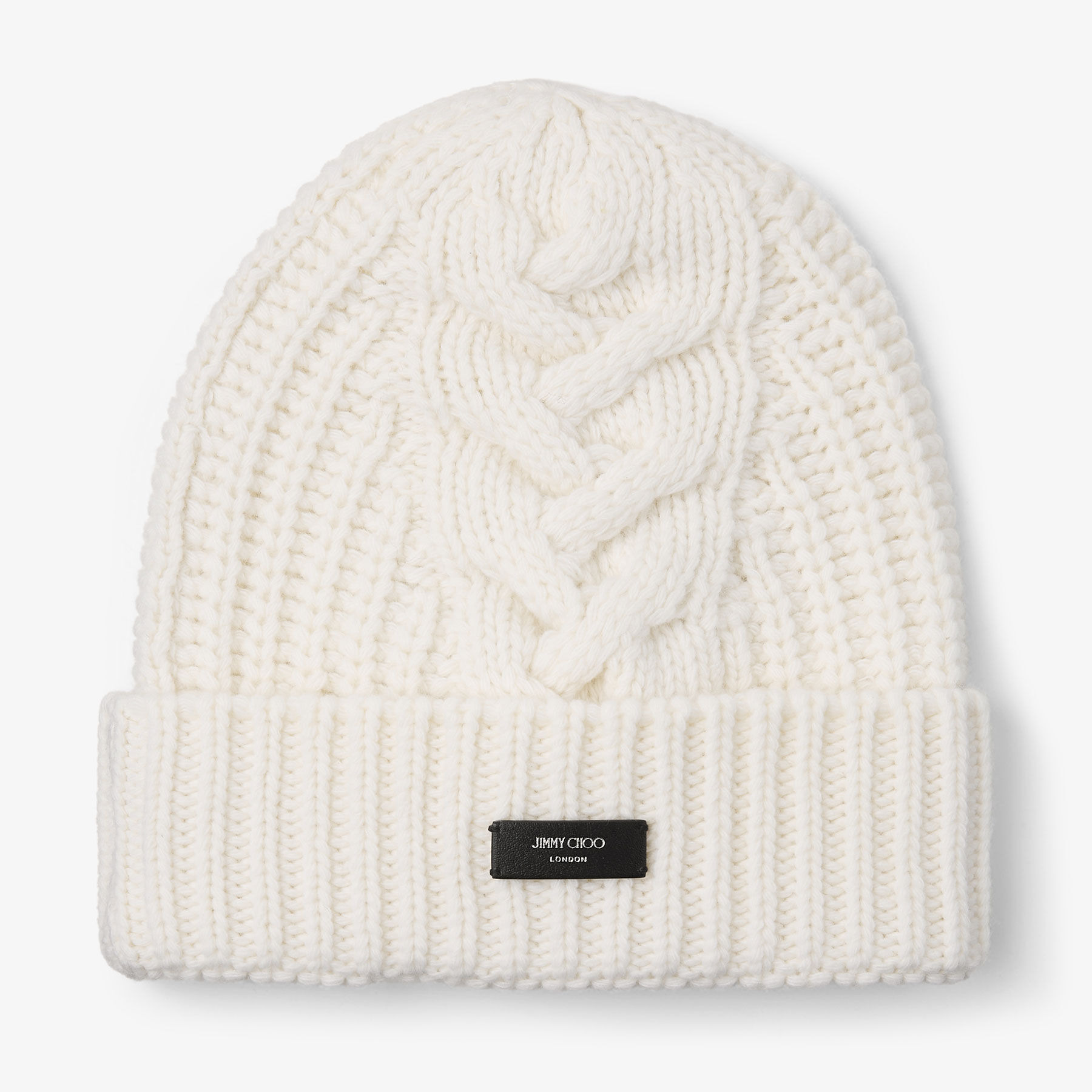 Yuki Cable Latte Cable Knit Beanie with Leather Logo Tag