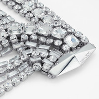 Details, Care & Fit The crystal Zandra bracelet echoes the embellishment of the complementing Zandra clutch bag and features our signature Diamond hardware. - Silver-finish steel - Crystal - Diamond hardware - Height: 4.5cm - Weight: 100 grams - Presented in a Jimmy Choo pouch and box - Made in Italy - Due to its handcrafted nature, every style is unique and there may be small differences between the pieces