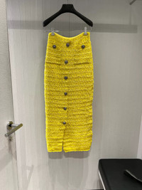 Balenciaga Women's tweed skirt with yellow back buckle in bright silk