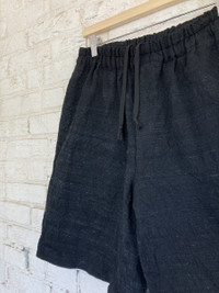 IG: Guerrero_sto CDGH+ SS1997 Wool and Silk Shorts Interesting pair of shorts made of Wool and Silk. This combination of fabrics results in a very interesting texture, with horizontal lines running through the shorts and a peculiar piling pattern. This interesting "striped" look is a recurrent aspect of CDG materials. Though these shorts are made of wool, the material is quite breathable and suitable for the summer months. The mix of wool and silk is also very light and not itchy at all. the fit is nice and comfortable, with a wide but straight cut, a roomy waist and medium length, sitting right in the middle of the knees. Size: M fits a wide range of sizes due to the elastic waist and drawstring Condition: 9/10. the material is piling a bit, but its meant to and it gives the shorts an interesting texture. Great condition for being almost 25 years old Check out my page for CDG, Rick Owens, General Research, Maison margiela, Kapital and more!