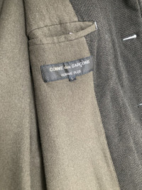 IG: Guerrero_sto Comme des Garcons Homme Plus A/W 1999 Wool Coat Unique CDGHP "work" jacket. Made out of wool this jacket combines the materials of a suit jacket and the cut of a work jacket. This cut results in interesting details, such as the hems, which have a distinctive look. Size: L, fits boxy Condition: 9/10 Check out my other items!