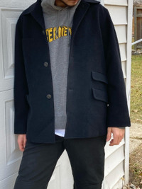IG: Guerrero_sto General Research 1997 wool dress Jacket For General Research’s founder Setsumasa Kobayashi, the conceptual thought put behind a garment is as crucial as the physical product itself. For each collection, he retreats to a cabin in the Chichibu mountain range, where he is able to both connect intimately with nature, and let his creativity blossom in an unobstructed environment. Citing Anarchist political theory and Henry Thoreau’s “Civil Disobedience” as his primary influences, his work is highly practical, with form never existing without a function. He has specifically stated that he never uses technical fabrics without a purpose for their use, and that the detailing of his clothing often relates to functionality he found useful while crafting his works in isolation. In 1997 GR featured a number of garments meant for left handed people, (including a version of the infamous parasite t shirts). This particular jacket features a focus on left handed practicality (an extra phone pocket on the left side, a chest pocket for the right hand and two inside chest pockets). This practicality would be explored upon (and brought to impracticality) in the next collection 1998. Made out of a wool blend, with nice lining rayon material. beautiful attention to detail as usual. Size: M fits tts, nice cut allows for layering 8/10 Condition, small piling that could be fixed Check out my other items!