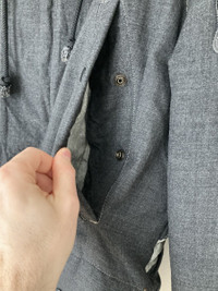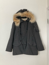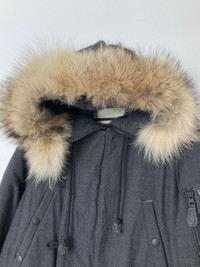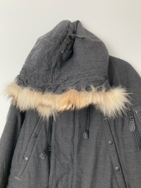Guerrero_sto General Research 1997 fur lined jacket Very interesting GR jacket full of interesting details. The hood has two positions, a normal one and an extended one, which provides extra protection against the elements. The fur is really soft and when the hood is not up but fully zipped it fully covers the neck and is very warm. The cut is shortened (compared to other snow jackets), which allows for increased mobility. Also, this jacket features two types of closing mechanisms, a zipper (which is higher than normal in favour of mobility) and military-inspired buttons. The lining in the pockets is made out of a soft wool for warmth. There are two sets of pockets (along with a sleeve pocket). the "hand pockets" feature two buttons that allow the pocket to be smaller or bigger, for both warmth and to accommodate gloves. Also featuring a reflective line running across the back, elbow patches, and leather details all throughout the jacket. Condition 6/10 some signs of aging in the lining, needs a good dry clean Size M, fits boxy (could fit an L) Check out my other items!