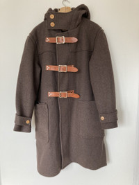 IG: Guerrero_sto General Research Original Strap Jacket General Research started as a broad idea, with the objective to focus on specific subject matter as the brand developed. This focus came later, with the creation of Naval Research, Prisoner Suit Research, Military Wear Research and Mountain Research (among others). This broad approach resulted in the exploration of a wide arrange of styles and materials in the early years which led to a focus on technical, outdoors oriented-wear in later years. This early experimentation led to different styles in early collections ranging from punk-influenced garments and to practicality-driven designs and other staples in the brand, such as the varsity jackets and the motorcycle pants. Along with the motorcycle pants and varsity jackets, this coat also became a staple in the brand. The idea of using straps as a closing mechanism was first employed in the 1995 collection, although this jacket did not make its debut until the next year. In 1996 the strap jacket featured a hood, a third strap and elongated length. Made of a soft melton wool this jacket is built for the cold. features three outer pockets, one of these being a smaller pocket within the right pocket. Leather straps and adjustable cuffs as well as a face cover for extra protection. After this year this model appeared irregularly throughout the seasons with small changes, such as fewer rivets, one button for the face cover (instead of two) and covers for the pockets. Size M fits wide to accommodate linings or other garments for extra warmth Condition: 9/10 really outstanding, especially given the age. Most of the jackets like these I have seen are damaged due to washing Check out my other items!