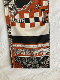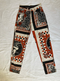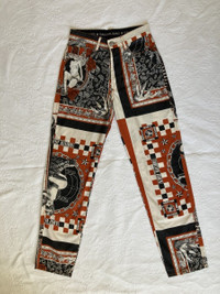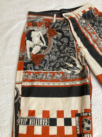 IG: Guerrero_sto Jean paul Gaultier SS94 Handkerchief printed pants Despite not having any formal fashion education, Jean Paul Gaultier managed to establish himself in the 70s and 80s as the “enfant terrible" of French fashion. His work often challenged the boundaries of high-fashion, breaking and reversing gender roles and allowing plus sized women, older men and people of different ethnicities to graze his runways before any other designer. His undeniable talent paired with his rejection of conformity made him a fiercely divisive designer. Despite the negative attention he received (mainly by the French Press) he was supported by many subversive, forward-thinking icons, including Madonna and Marilyn Manson, both whom he conceptualized tour wardrobes for. Jean paul Gaultier’s world is one where ethnicity and gender are comfortably tangled. This vision is apparent in the Spring Summer 1994 “Les Tatouages” collection. Defined as “A startling vision of cross-cultural harmony”, this collection featured a blend of references, including men in skirts, denim cut in eighteenth-century shapes, corsetry, chain link accessories, knight armor, a punkish graffiti print, and a tattoo-currency motif. This collection also featuring elements from tribal, Indian, and African cultures and traditional clothing, such as the much-commented-on faux piercings, which highlighted his interest in “global village chic” that would ultimately define Gaultier’s work for decades. This particular pair of pants feature a number of prints that resemble a handkerchief. The prints are different and it ultimately looks like a number of different handkerchiefs mended together to make the pants. The material is a light cotton, ideal for warmer temperatures. Beautiful details in the closure buttons and prints. Size: 27 (refer to measurements) Condition: 9/10 check out my other items!