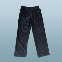 IG: Guerrero_sto Kiko Kostadinov Yann Treated Corduroy pants (FW18) From Kiko's fifth collection, "Obscured by Clouds". Made out of a hand treated "corduroy" fabric, these pants are full of details. First of all, the construction is something that we need to talk about, as Kiko achieves a very interesting and ambiguous pant from a seemingly normal cut. There is a panel that runs through the inside of the thighs all the way to the ankle, and a square panel at the back that ends right below the butt. Both of these are visible in the close up picture of the back. In said picture, you can also notice how strange the pocket placing is. Instead of being right on the back, the "back" pockets are placed to the side, almost touching with the front pockets. Another detail of these pants is the snaps. There are four studs but only two caps. These caps are attached to a "strap", that allows you to position it either on the front pockets (pictured) on in the back pockets. Despite being corduroy, they are breathable. Other details include the unique belt loop placing, a 3d "Kiko Kostadinov" on the hidden side of the snaps, and, my personal favourite, a very satisfying and smooth Riri fly zip (the best I have ever zipped). Colour: gray, I think the images convey the colour, they are not as shiny as the runway pics though Condition: 9/10 missing the tags, but almost new Size: XS, fit more like 29-30 high waisted
