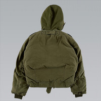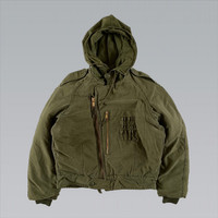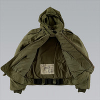 IG: Guerrero_sto Canadian Army Combat Vehicle Crew Jacket (1991) This is one of the most sought after models from the Canadian Army. Originally created in the late 60's, the cold weather tanker jacket was created as part of a tanker suit, which replaced the jumpers that they used to wear. This jacket has seen several iterations since its original conception, with very little changes in terms of construction. The model I have here was issued in 1991 and it is rated to protect the wearer in weather as cold as -25 Fahrenheit (-31C). There are a number of details that make this jacket stand out. First and most obvious is the slanted zipper and the front pocket, both of which are zipped by sturdy YKK zips. There are two inner pockets (one at each side), which themselves are barely visible in these pictures. However, the outline of this pockets are clear in the front, which give it a disticnt look. It has a handle on the back for easy carrying (or perhaps for people to be grabbed out of the tanks, Idk), and buttons on the bottom hem to attatch the jacket to the complementary pants. The hoodie has the inner wire, so you can change the shape for added protection. Made out of one of the most durable materials 50% Cotton / 50% Nylon Shell, with Wool Interlining and Nylon Lining. Sizing: 7042. 70 equals height in inches and 42 the circumference of the chest. Condition: 8/10, overall use and small repaired hole on the back, but great condition