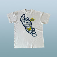 IG: Guerrero_sto W< "The Glowing Footprint tour" (SS04) To be honest, I don't know much about this piece or the tour itself. Featuring the classic Puk Puk with his tool out and the dates of the tour in the back. printed on top of a Stedman Classic. Please hit me up if you know anything about it. Only considering serious offers around the price listed. Color: White Condition: 8/10 small marks of age Size: L pretty TTS, perhaps a bit small, see measurements.