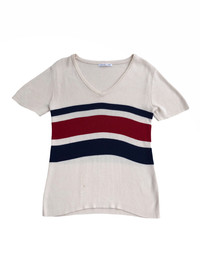 Size : (please refer to actual measurement given and compared with your best fitting clothes ) Measurement: (garment laid flat) Width (Armpit to armpit): 16” inches Length (Top collar to bottom): 22.5” inches Material : Cotton Condition : 7/10 ( Very Little Stain