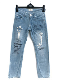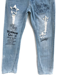 I’m always willing to negotiate so DM me with offers. Please be PayPal ready. All sales are final, no refund Size : (please refer to actual measurement given and compared with your best fitting clothes ) Measurement: (garment laid flat) Waist : 26" inches Outseam : 38.5" inches Inseam : 30" inches Leg opening : 14" inches Tag : Blue Moon Made in : China Material : Cotton Condition : 8/10 Dear valued customer, all items sold on are subject to the following terms and conditions: ■Accept PAYPAL Only ■Please leave your phone number on the note while make a purchase. ■This item will be ship along with Tracking Number after received a completed payment. • Some items are in used condition and will show signs of wear, please see the condition of the item as detailed in the description and note any defects shown in pictures of the items. • No returns, refunds, cancellations or exchanges are accepted. All sales are final. ATTENTION : Please pay close attention to measurements provided. Do not rely on tag size as pre-worn items may have been altered, stretched or shrunk & vintage sizes do not directly translate the modern sizes.The best way to ensure a right fit is to compare our measurements with the measurements of a similar item that you know fits you well.Please enlarge the photos for clearer image. ● Please do not hesitate to contact me if you have any inquiries. Don't forget to check out my store for more. Thank you.