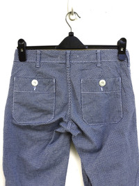 Size : ( please refer to actual measurement given and compared with your best fitting clothes ) Measurement: (garment laid flat) Waist: 28 inches Length 38” inseam 30.5” Leg opening 8” Tag : John Bull Made in Japan Material : Cotton Condition : 9/10 ■Accept PAYPAL Only ■Please leave your phone number on the note while make a purchase. ■This item will be ship along with Tracking Number after received a completed payment. SHIPPING ( Tracking number provide ) $20 ( Register post with tracking number 14-21 day varies place For Purchase above $100 usd will used (DHL Express) with tracking number 4-5 day to arrive varies place (Better buy in bulk to save shipping cost. • Some items are in used condition and will show signs of wear, please see the condition of the item as detailed in the description and note any defects shown in pictures of the items. • No returns, refunds, cancellations or exchanges are accepted. All sales are final. ATTENTION : Please pay close attention to measurements provided. Do not rely on tag size as pre-worn items may have been altered, stretched or shrunk & vintage sizes do not directly translate the modern sizes.The best way to ensure a right fit is to compare our measurements with the measurements of a similar item that you know fits you well.Please enlarge the photos for clearer image. ● Please do not hesitate to contact me if you have any inquiries. Don't forget to check out my store for more. Thank you.