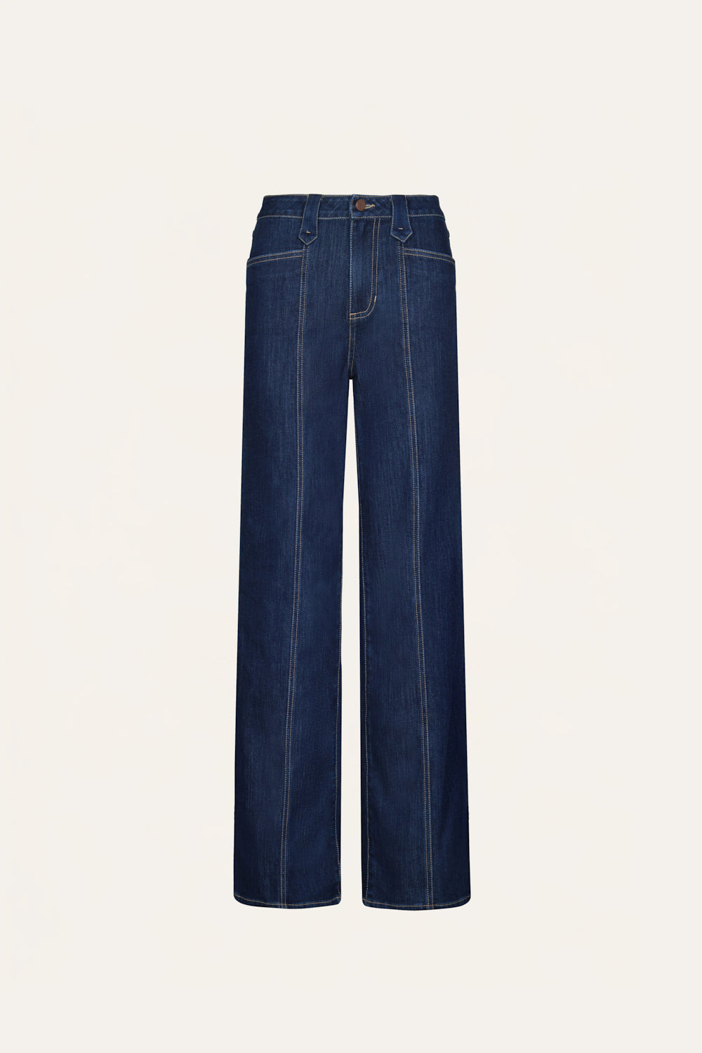 Denim boot-cut jeans with a high-rise waist and subtle flare at the hem. A classic JO silhouette, finished with contrast stitching along the seams. Size and Fit: - Designed with a slim fit. - High-rise, boot-cut. - Please refer to our size chart for detailed guidance. Product Details: Closure: Front Zipper Composition: 64% Cotton, 34% Polyester, 2% Elastane Fabrication: Denim Color: Navy Denim Made in Colombia Dimensions: Length 44.09''