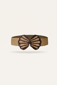A handwoven belt detailed with an artisanal shell-shaped buckle. A statement accessory to elevate other pieces from the collection, designed to define the waist and add a sculptural touch to any look. Product Details: Hand Embroidered Closure: Front Buckle Composition: 45% Polyester, 35% Viscose, 20% Leather Fabrication: Polyester, Viscose And Leather Belt Color: Sand/Chocolate Made in Colombia Dimensions: Width 1.97'', Buckle: Width 6.30'', Height 3.74''