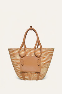 Crafted from natural Iraca palm fiber sourced from the skilled weavers of Sandona, Narino, this bag embodies artisanal craftsmanship at its finest. The brown leather contrasts beautifully with the sand-colored Iraca, creating a striking and refined accessory. The handcrafted quality reflects the tradition and heritage of Colombian artisans. Product Details: Closure: Open Top With Tie Strap Closure Composition: 80% Natural Fiber (Iraca Palm), 20% Cow Leather Fabrication: Iraca Bag With Leather Handle Color: Camel/Sand Made in Colombia Dimensions: Length 18.90'', Width 11.02'', Height 11.81'', Drop 6.30''