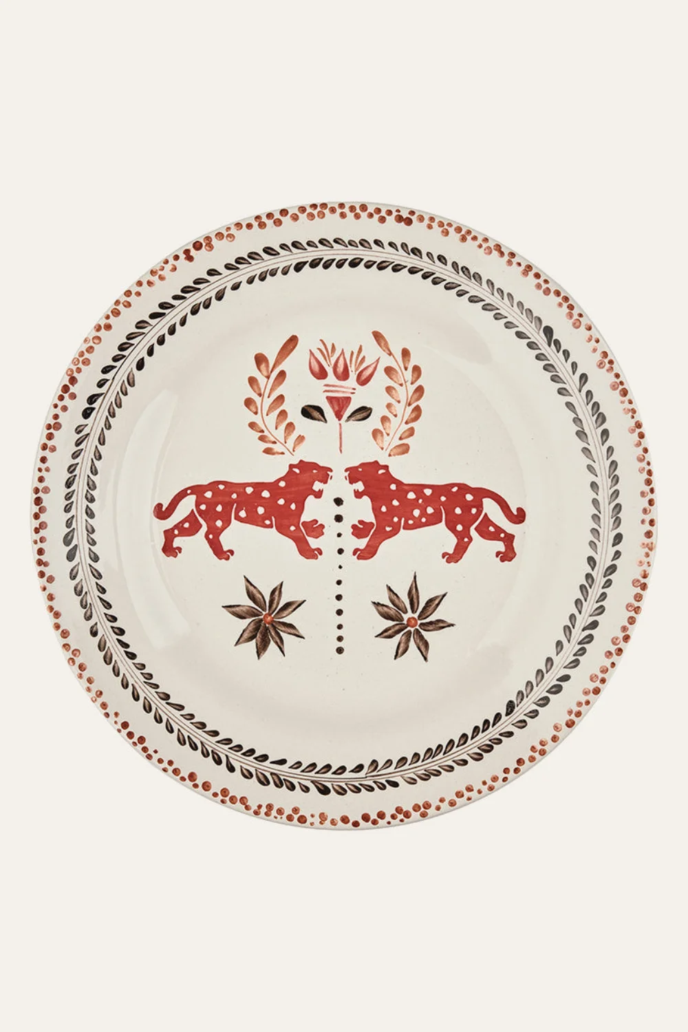 Discover JO's ceramic tableware, hand-painted in Carmen de Viboral, Colombia, with intricate designs inspired by JO archive prints. This collection features dinner plates, bowls, and mugs in versatile colorways, perfect for mixing and matching to create unique table settings. Product Details: Composition: 100% Ceramics Fabrication: Ceramics Color: Earthy Marsala Made in Colombia Dimensions: Diameter 11''
