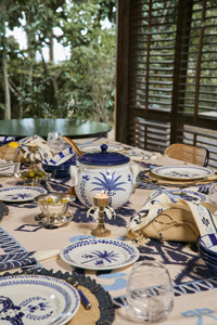 The "Casa Collection '24" Home Collection by Johanna Ortiz features exquisite tablecloths, dinner napkins, and cocktail napkins in Navy, Red, and Aqua colorways. Inspired by the Colombian tropics' vibrant spirit and lush beauty, these linens add tropical elegance to any dining or gathering experience. Product Details: Composition: 100% Cotton Fabrication: Cotton Table Cloth Color: Deep Navy Made in India Dimensions: Length 118.11'', Width 78.74''