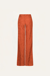 High-waisted pants crafted from textured jacquard featuring a subtle palm motif. Designed with a wide-leg silhouette that moves beautifully, they can be paired with the matching top for a coordinated look. Size and Fit: True to size. High-waisted, wide-leg silhouette. Please refer to our size chart for detailed guidance. Product Details: Closure: Side Zipper Composition: 100% Viscose Fabrication: Palmnimal Jacquard Color: Rust Made in Colombia Dimensions: Length 44.09''