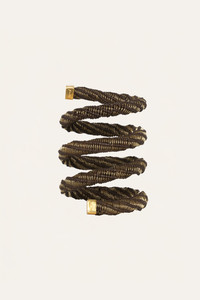 Johanna’s Iraca bangles feature sculptural forms handwoven in natural fibers. This spiral silhouette blends craftsmanship and movement, offering a unique statement. Product Details: Closure: Wrap Around Composition: 70% Natural Fiber (Iraca Palm), 30% Metal Brass Golding Fabrication: Natural Fiber (Iraca Palm) Bangles Color: Dark Chocolate/Gold Made in Colombia Dimensions: Diameter: 3.15'', Height: 3.94''