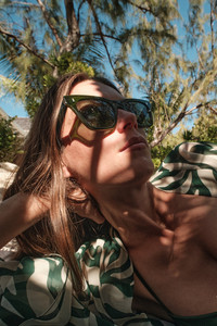 This capsule reimagines the L.G.R. Cecile silhouette with Johanna Ortiz’s tropical elegance. Each style tells a story, from Iconic Black to leather-accented Maguey. Subtle engravings and artisanal details make each pair a refined keepsake. Product Details: Closure: Put On Composition: 85% Acetate Mineral Glass, 15% Leather Fabrication: Acetate & Leather Sunglasses Color: Maguey Green/Camel Made in Italy Dimensions: Dimensions: Lens Width 2.1'', Bridge Width 0.7'', Temple Length 5.7'', Frame Width 5.7''