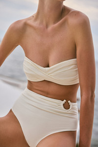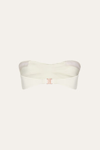 A classic Johanna Ortiz style, this sleek black bandeau bikini top features a twist-front design. Perfect for sunbathing or pairing with your favorite swim bottoms, it offers a timeless and versatile look for beach or poolside days. Size and Fit: Designed for a slim fit. Please refer to our size chart for detailed measurements and guidance. Product Details: Closure: Tie Fastening Composition: 80% Polyamide, 20% Elastane Fabrication: Lycra Color: Ecru Made in Colombia