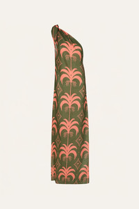 An asymmetric linen ankle-length dress defined by a flowing silhouette and waist tie fastening. Designed to balance ease with structure, it’s perfect for warm-weather dressing. Comes with a pareo for added versatility. Size and Fit: True to size. Please refer to our size chart for detailed guidance. Product Details: It Comes With Removable Skirt Closure: Wrap Around Composition: 100% Linen Fabrication: Light Linen Color: Green/Peach Made in Colombia Dimensions: Length 37.40''