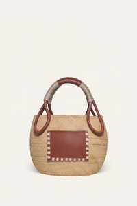 This beautifully constructed egg-shaped basket bag is a standout piece in JO's bag collection and all-time iconic. In this collection, the bag's outside pocket is adorned with creative and colorful embroideries, reminiscent of the patterns found in the tunics throughout the collection, echoing the tribal language expressed throughout the entire lineup. Product Details: Closure: Open Top with Tie Strap Closure Composition: 60% Natural Fiber (Iraca Palm and Tagua), 34% Cow Leather, 3% Cotton, 3% Viscose Fabrication: Iraca Bag With Leather Handle, Cotton And Viscose Raffia Embroidery Color: Camel/Rust/Ecru Made in Colombia Dimensions: Length 13.78'', Width 9.84'', Height 9.45'', Drop 5.91''