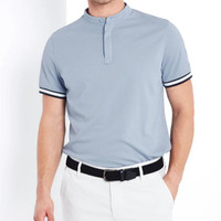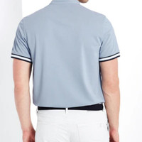 The Haskett Polo – Sport Meets Sophistication in Clear Sky Elevate your performance and style with The Haskett Polo in Clear Sky from AG Green Label’s Green Label Collection. Made from lightweight, quick-drying pique polyester, this polo delivers breathable comfort and moisture-wicking technology to keep you cool and focused on the course. The sleek stand collar and clean button placket offer a refined touch, while the short sleeves with striped rib trim bring modern athletic flair. Designed with split sides and a slightly dropped back hem for optimal fit and movement, The Haskett Polo transitions effortlessly from a round of golf to relaxed off-course settings. Bold yet versatile in Clear Sky, it’s your go-to for polished performance wear.