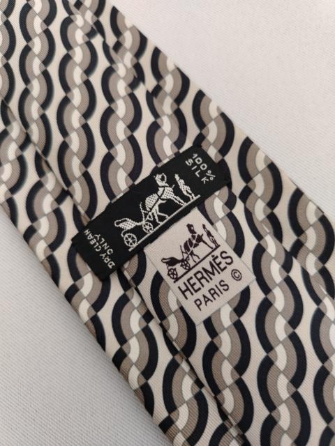 Hermes Paris 5374 OA Pure Silk Designer Necktie Geometric Pattern Gray Tie France