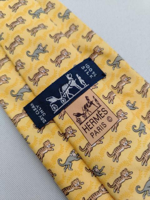 Vintage Hermes Paris 5382 OA Silk Designer Necktie Whimsical Tiger & Monkey Pattern Yellow Used Tie