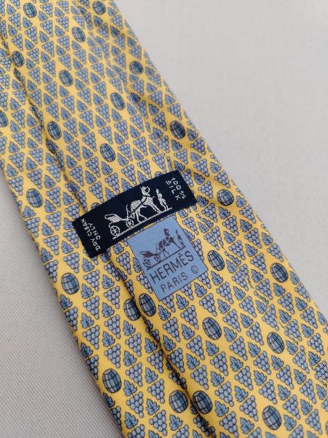 Vtg Hermes Paris 5073 PA Silk Designer Necktie Wine Barrel Pattern Yellow Tie