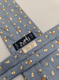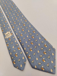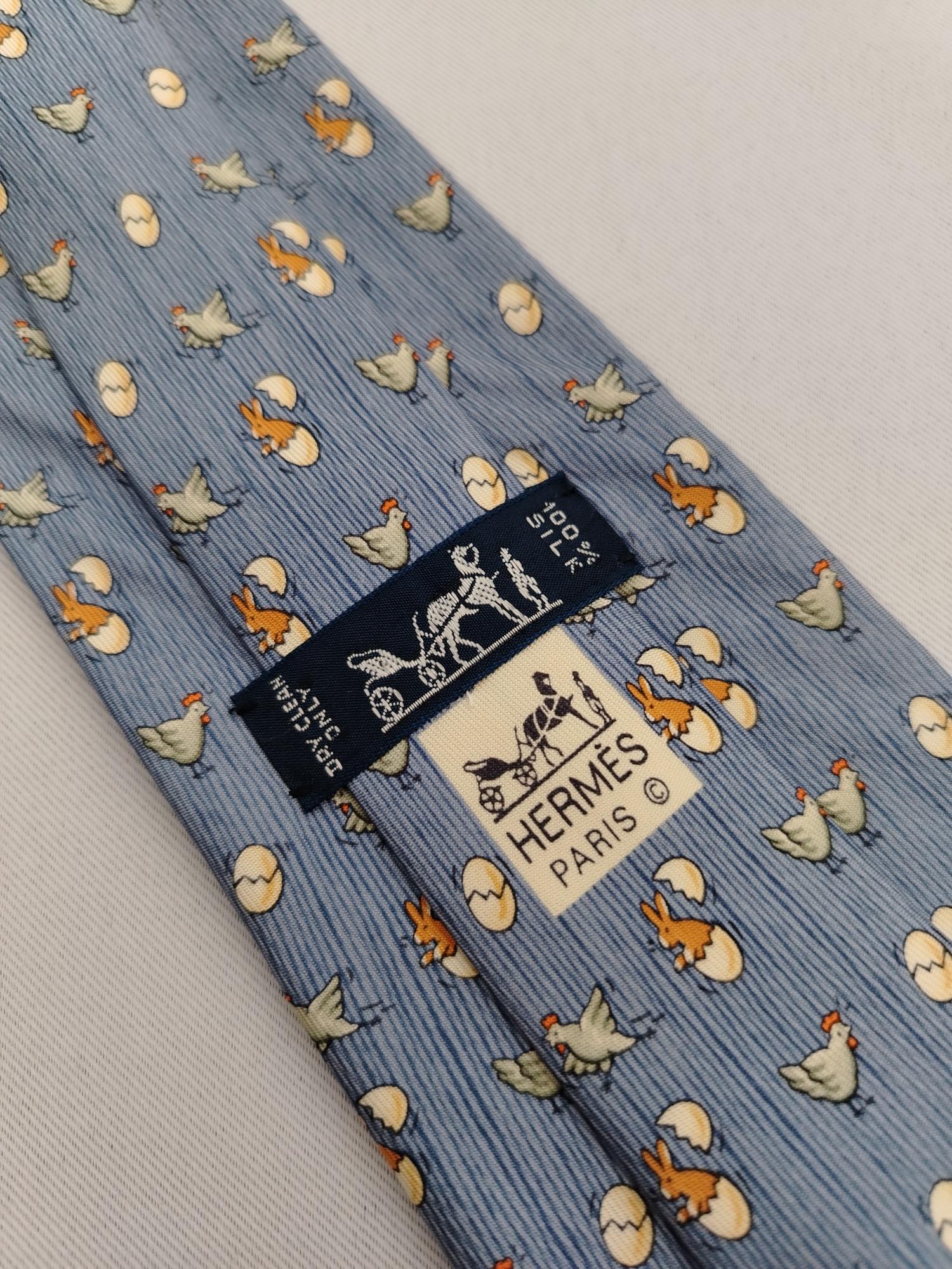 DESCRIPTION A used/pre-owned exquisite authentic vintage Hermes Paris, fine pure silk, Chicken Hatching Rabbit pattern, and ready-to-wear designer neckwear. Made in FRANCE with initial number 7890 MA. The condition of the necktie is EXCELLENT and the overall rating is 8.5/10. The tie showed slight signs of use before. Don’t hesitate to ask any questions about your inquiry. CONDITION: EXCELLENT and overall rating is 8.5/10. The tie showed slight signs of use before without any significant flaws, pulls, and stains. The material is in great condition as well MEASUREMENT: Width 3 3/4 inches, Length 63 inches MATERIAL: 100% Silk