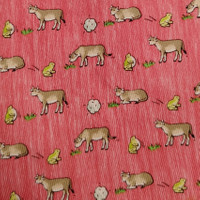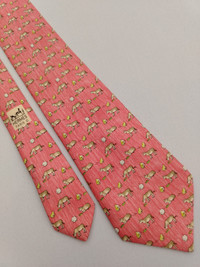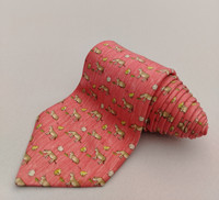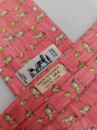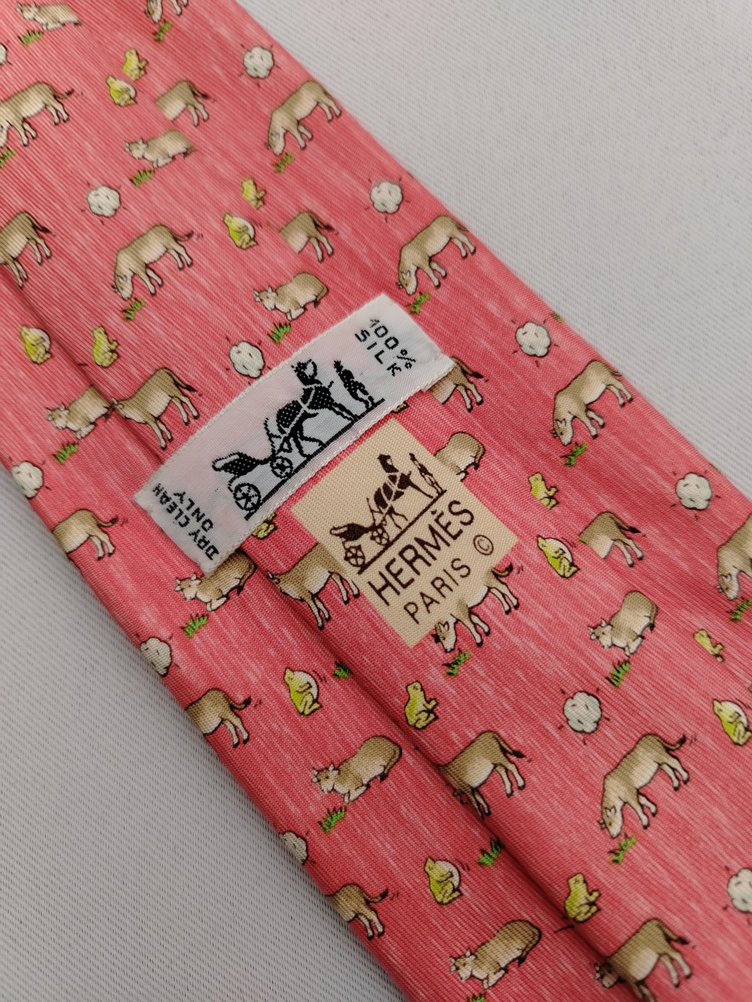 Hermes Paris 7893 MA Silk Designer Necktie Frog & Cows Pattern Pink Used Tie France