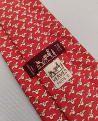 Vintage Hermes Paris 5192 IA Silk Designer Necktie Whimsical Seagull Pattern Red Used Tie France