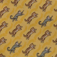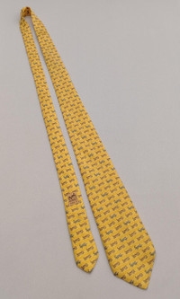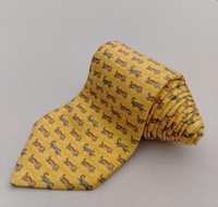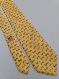 Vintage Hermes Paris 5382 OA Silk Designer Necktie Whimsical Tiger & Monkey Pattern Yellow Used Tie